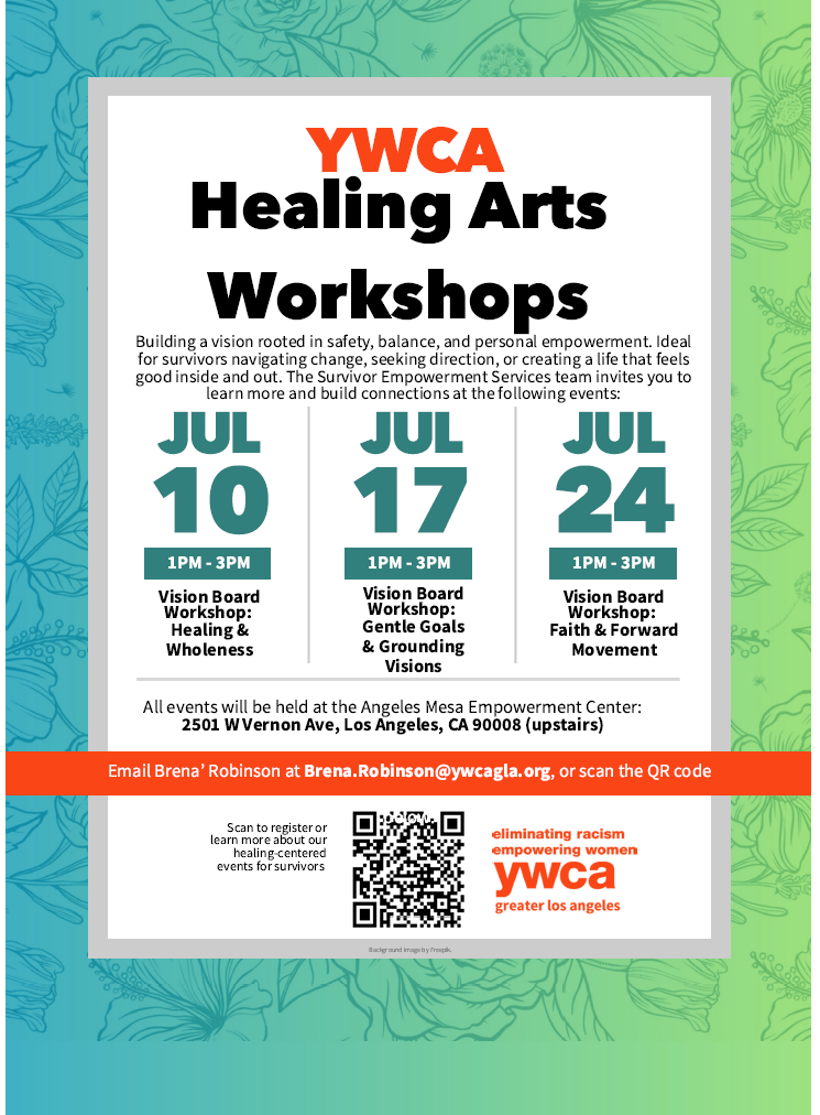 - Vision Board themes: Healing, Gentle Goals, Forward Movement happening every month, all year long. Email Brena.Robinson@ywcagla.org for details.
